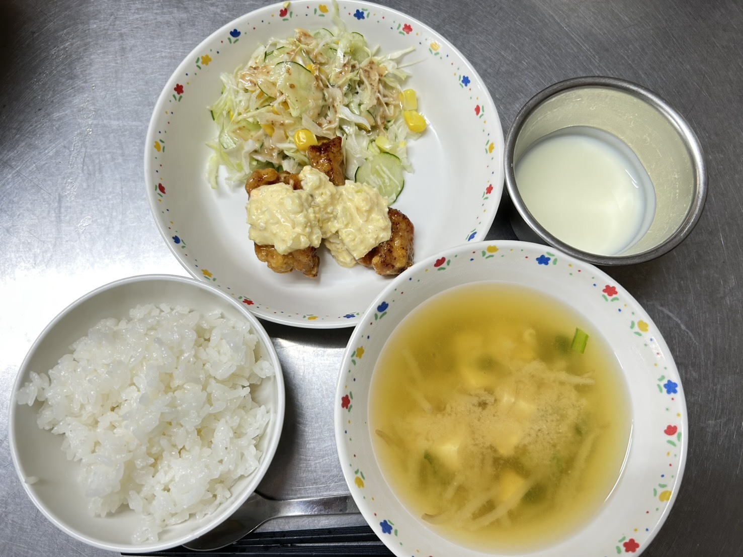 10月3日 御飯、チキン南蛮、生野菜、みそ汁、ヨーグルト