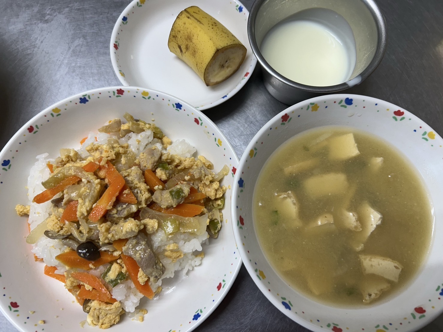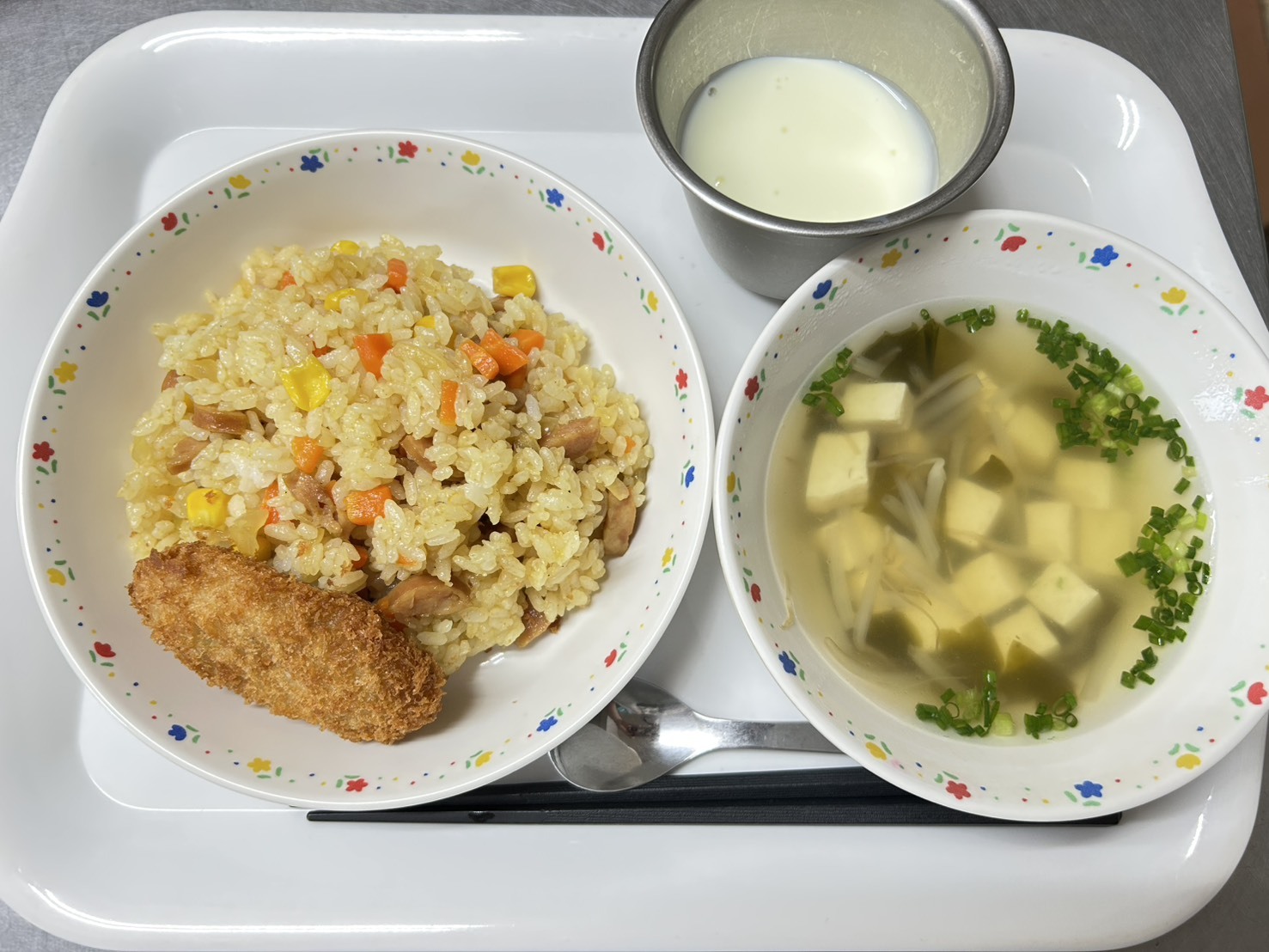 10月8日 カレーピラフ、ごぼうコロッケ、豆腐のスープ、ヨーグルト