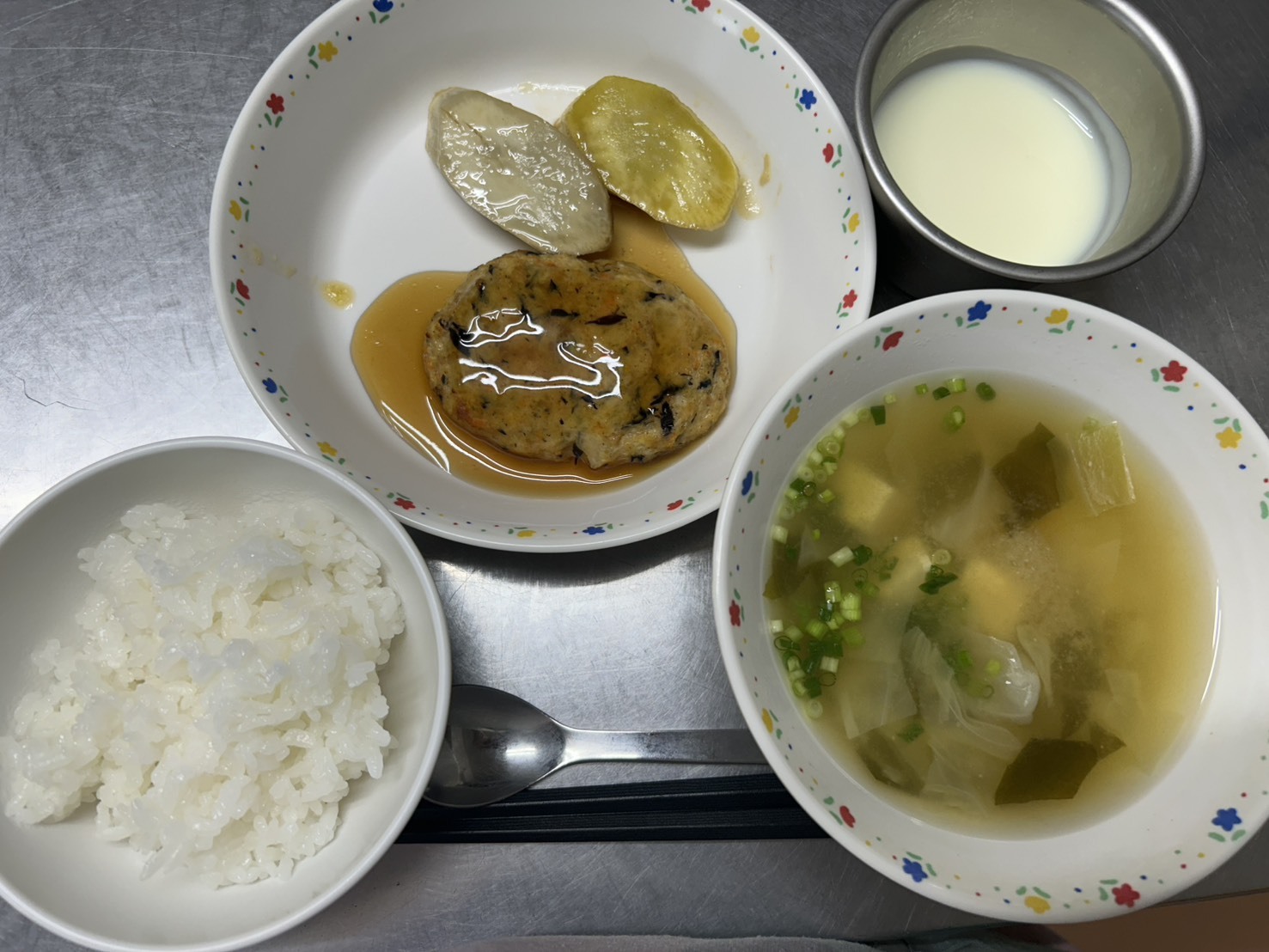 10月16日 御飯、ひじきハンバーグ(甘酢)、さつまいもの甘煮、みそ汁、ヨーグルト