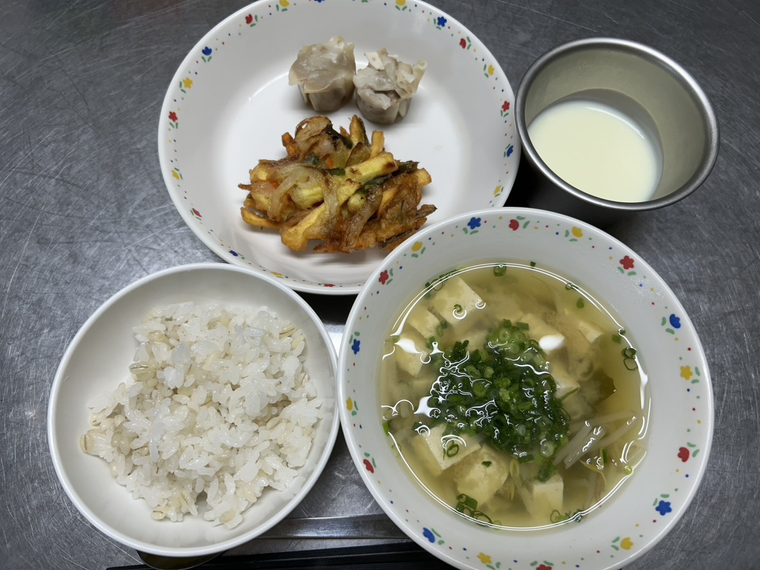 10月17日 麦御飯、かき揚げ、しゅうまい、みそ汁、ヨーグルト