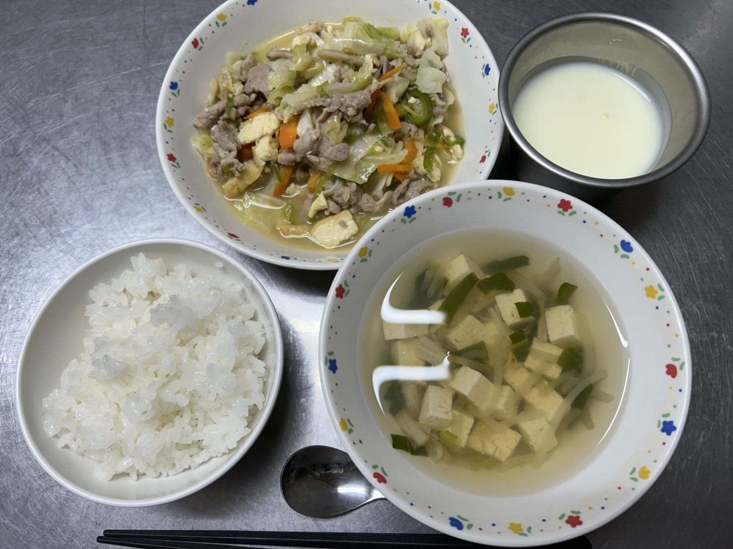 10月18日 御飯、豚肉とキャベツのみそ炒め、豆腐のすまし汁、ヨーグルト