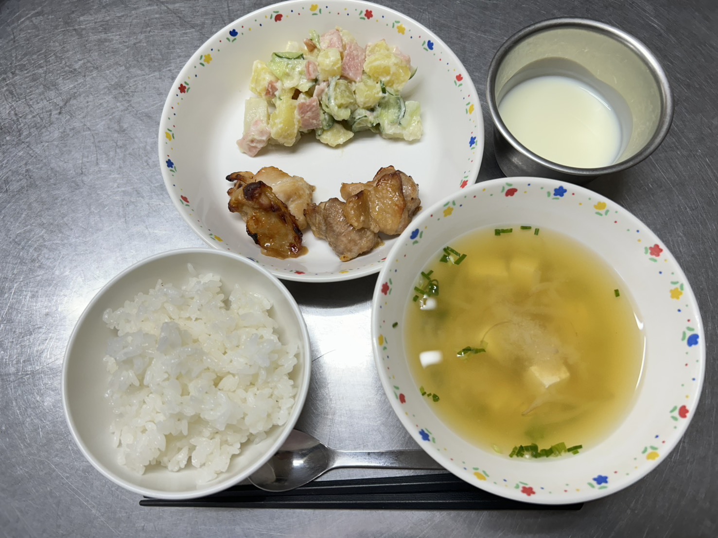 10月22日 御飯、鶏の照り焼き、さつまいもサラダ、みそ汁、ヨーグルト