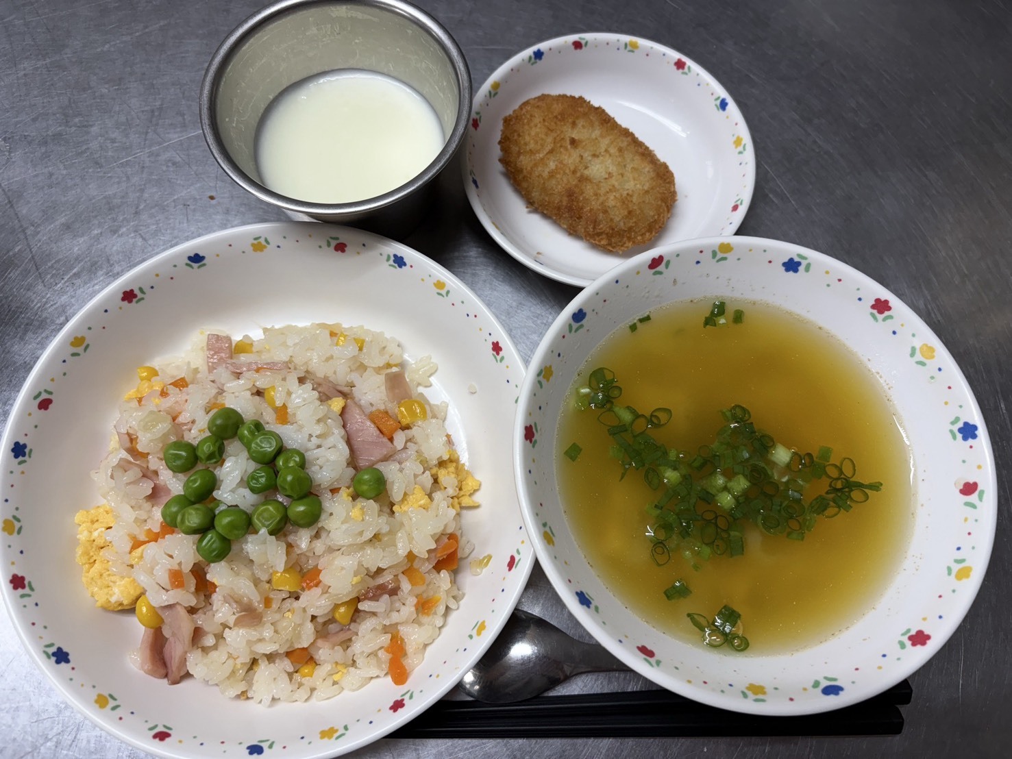 11月18日 卵とハムのチャーハン、ごぼうコロッケ、みそ汁、ヨーグルト