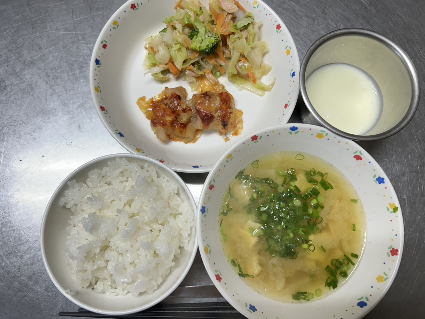11月13日 御飯、チキンカツ、焼きポテト・焼きにんじん、みそ汁、ヨーグルト