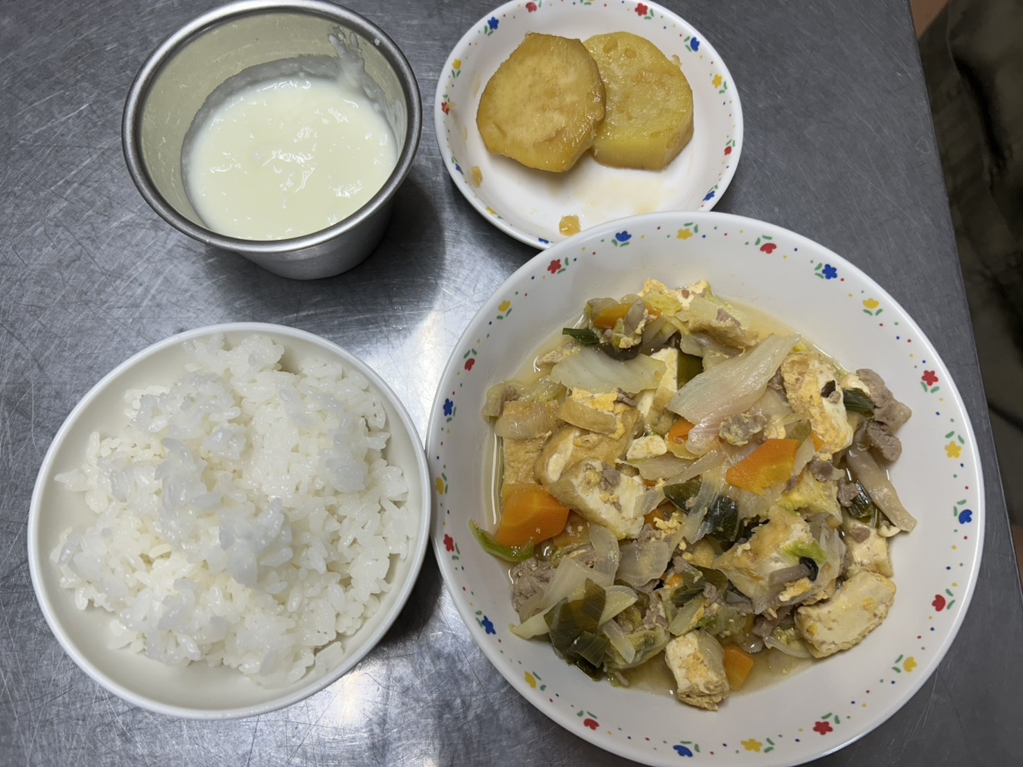 12月1日 御飯、すき焼き風煮、さつまいもの甘煮、ヨーグルト