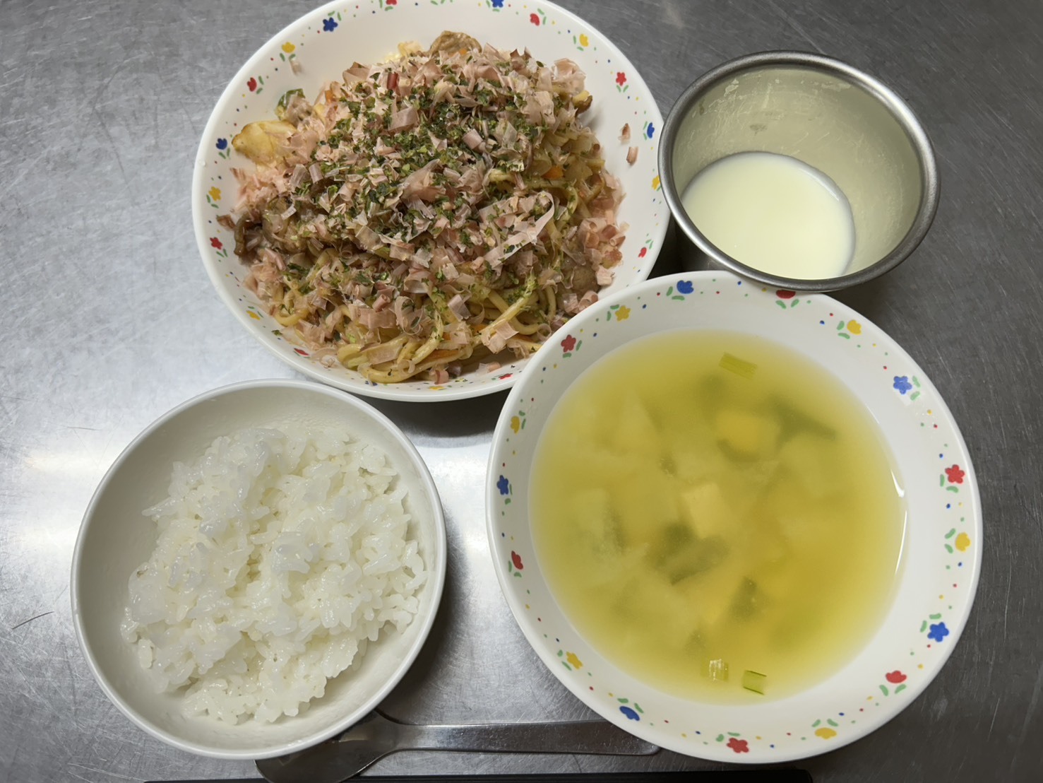 11月29日 御飯、豚肉とキャベツのみそ炒め、卵とわかめのスープ、ヨーグルト