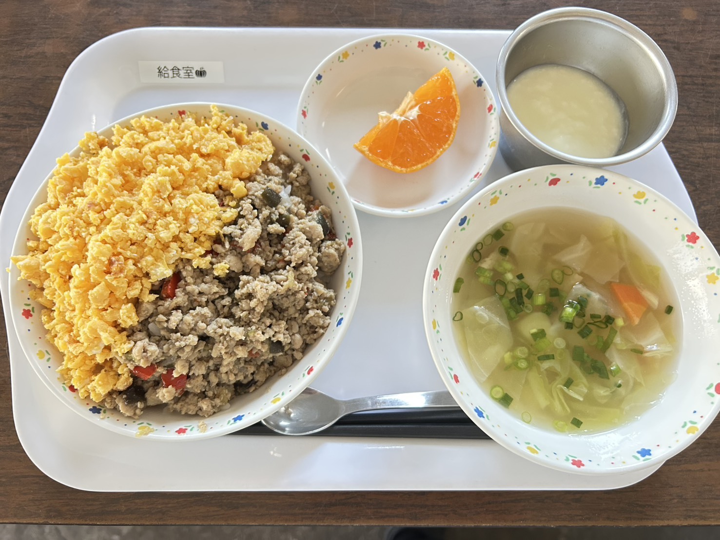 12月9日 ガパオライス風、さつま芋と野菜のスープ、ヨーグルト、みかん