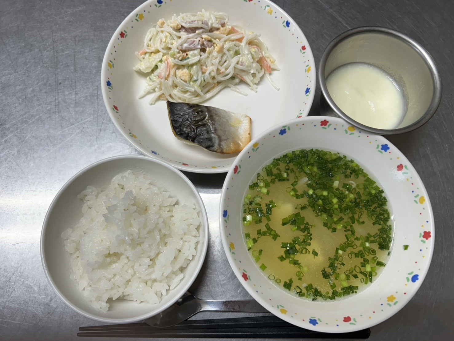 12月10日 御飯、魚の塩焼き、春雨のマヨネーズサラダ、みそ汁、ヨーグルト