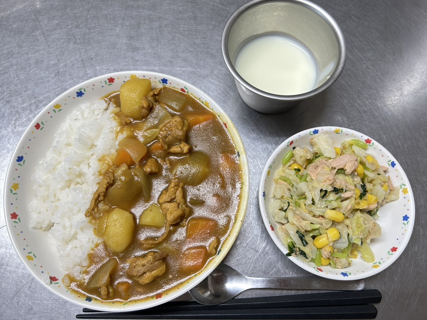 11月15日 カレーライス、キャベツとツナのごま和え、ヨーグルト