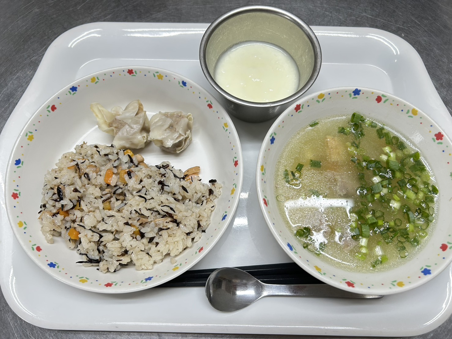 11月28日 ひじきとツナの御飯、しゅうまい、豚汁、ヨーグルト
