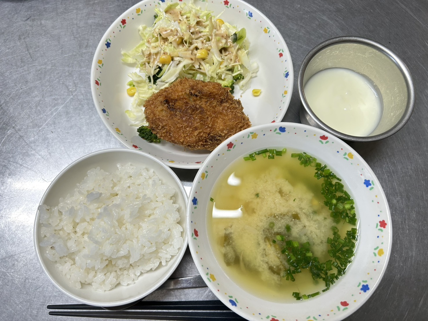 12月15日 御飯、おさつコロッケ、生野菜、みそ汁、ヨーグルト