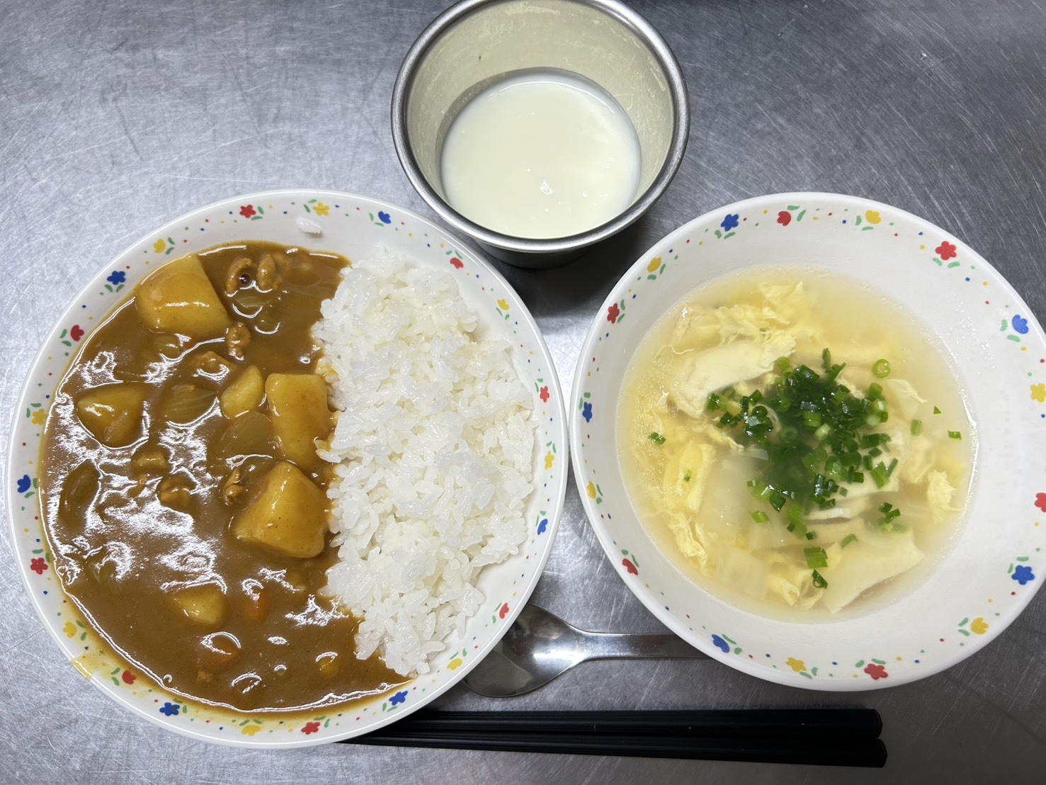 12月17日 カレーライス、たまごと野菜のスープ、ヨーグルト