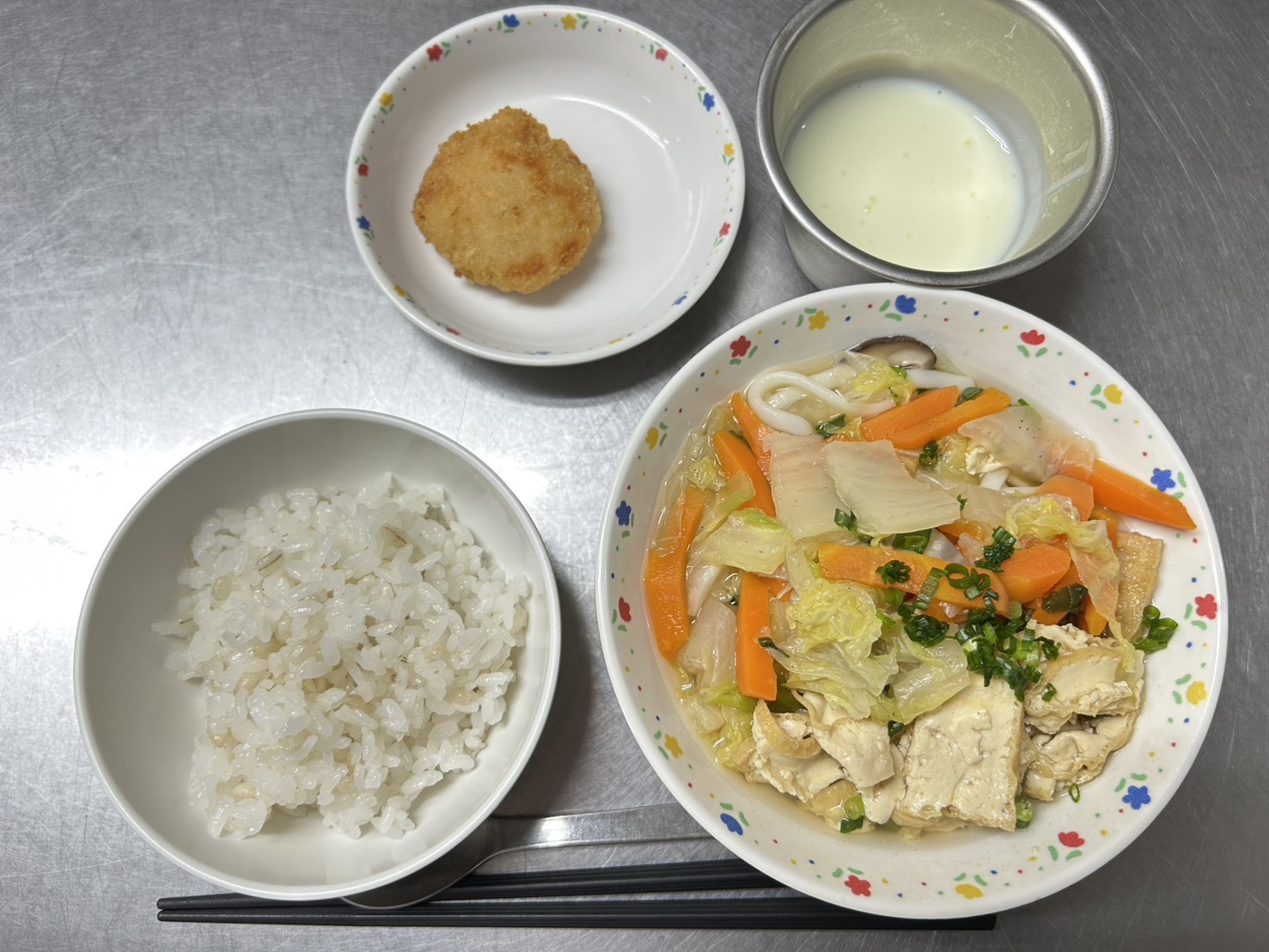 10月24日 麦御飯、きつねうどん、チーズササミカツ、ヨーグルト