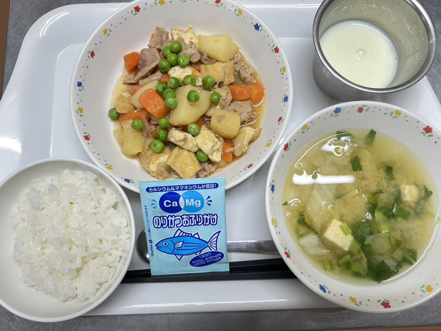 10月27日 御飯、カルシウムふりかけ、肉じゃが、みそ汁、ヨーグルト