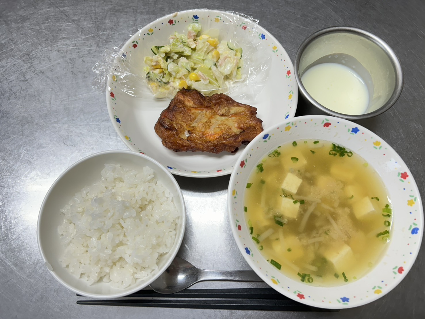 10月28日 御飯、さつま揚げ、シーチキンサラダ、みそ汁、ヨーグルト