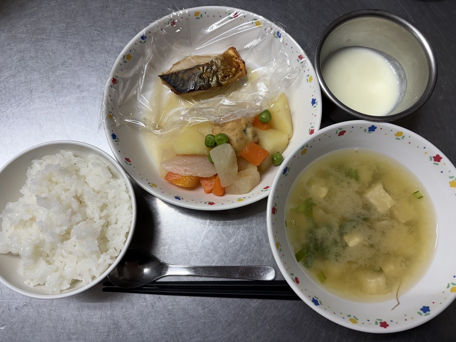12月25日 御飯、魚の照り焼き、がんもと大根の煮物、みそ汁、ヨーグルト