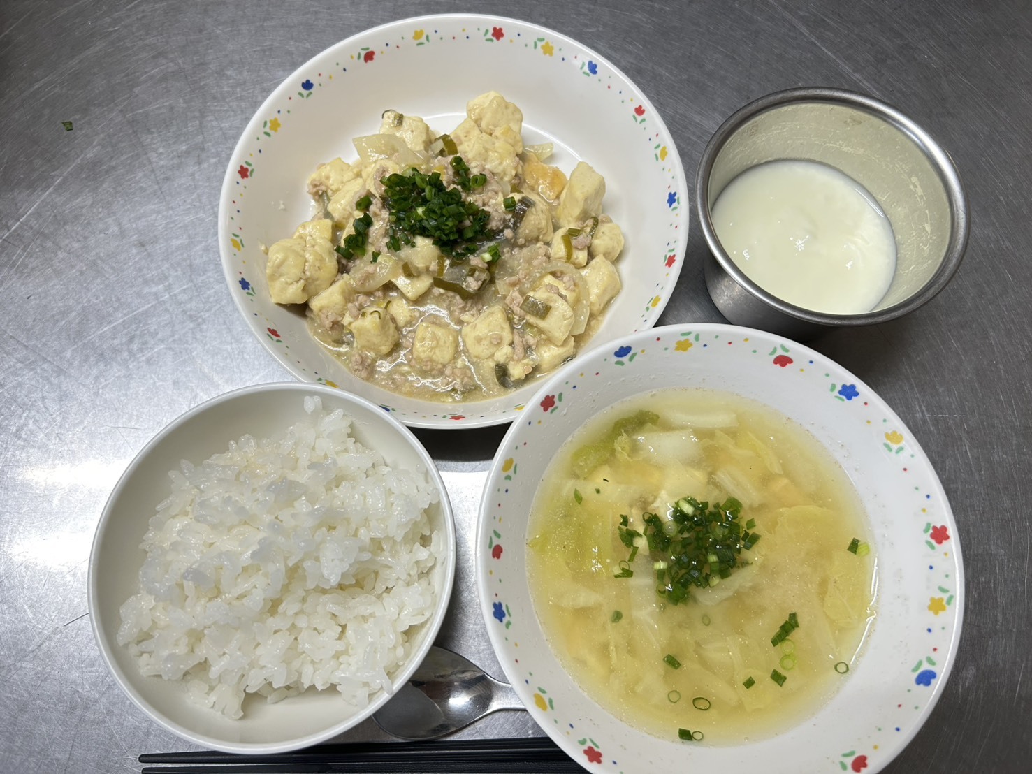 12月26日 御飯、マーボー豆腐(大根入り)、みそ汁、ヨーグルト
