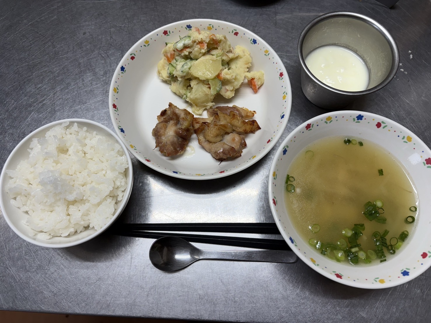 2月17日 御飯、鶏の照り焼き、和風ポテトサラダ、みそ汁、ヨーグルト