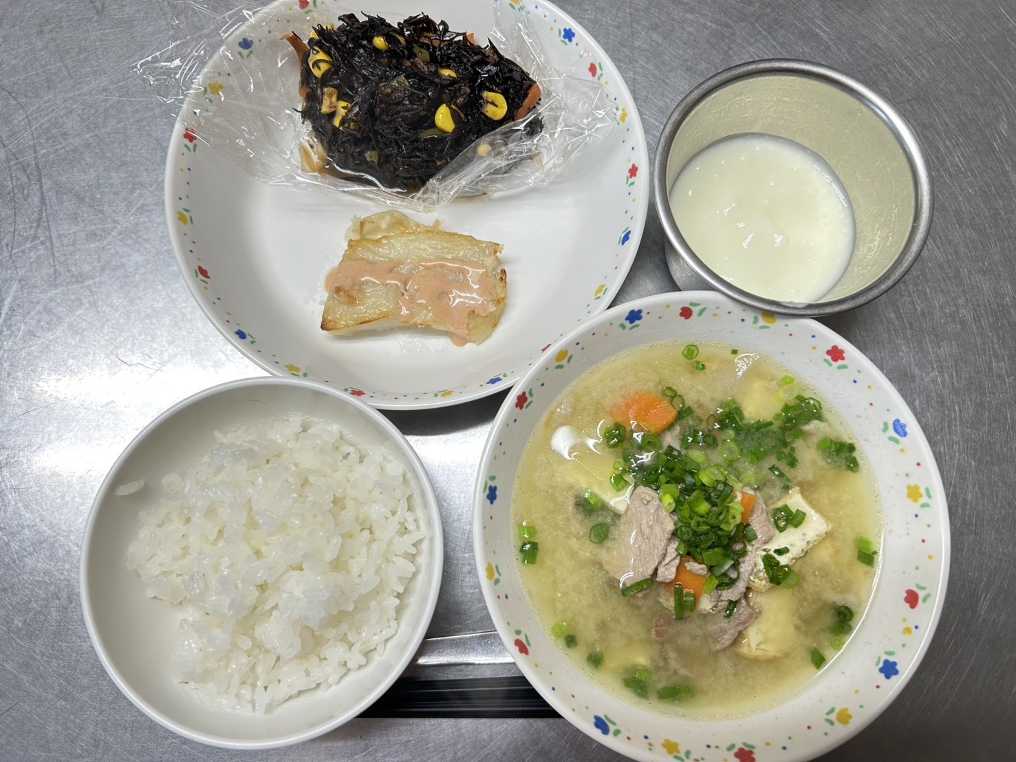 2月18日 御飯、魚のオーロラソース、ひじきの五目煮、豚汁、ヨーグルト