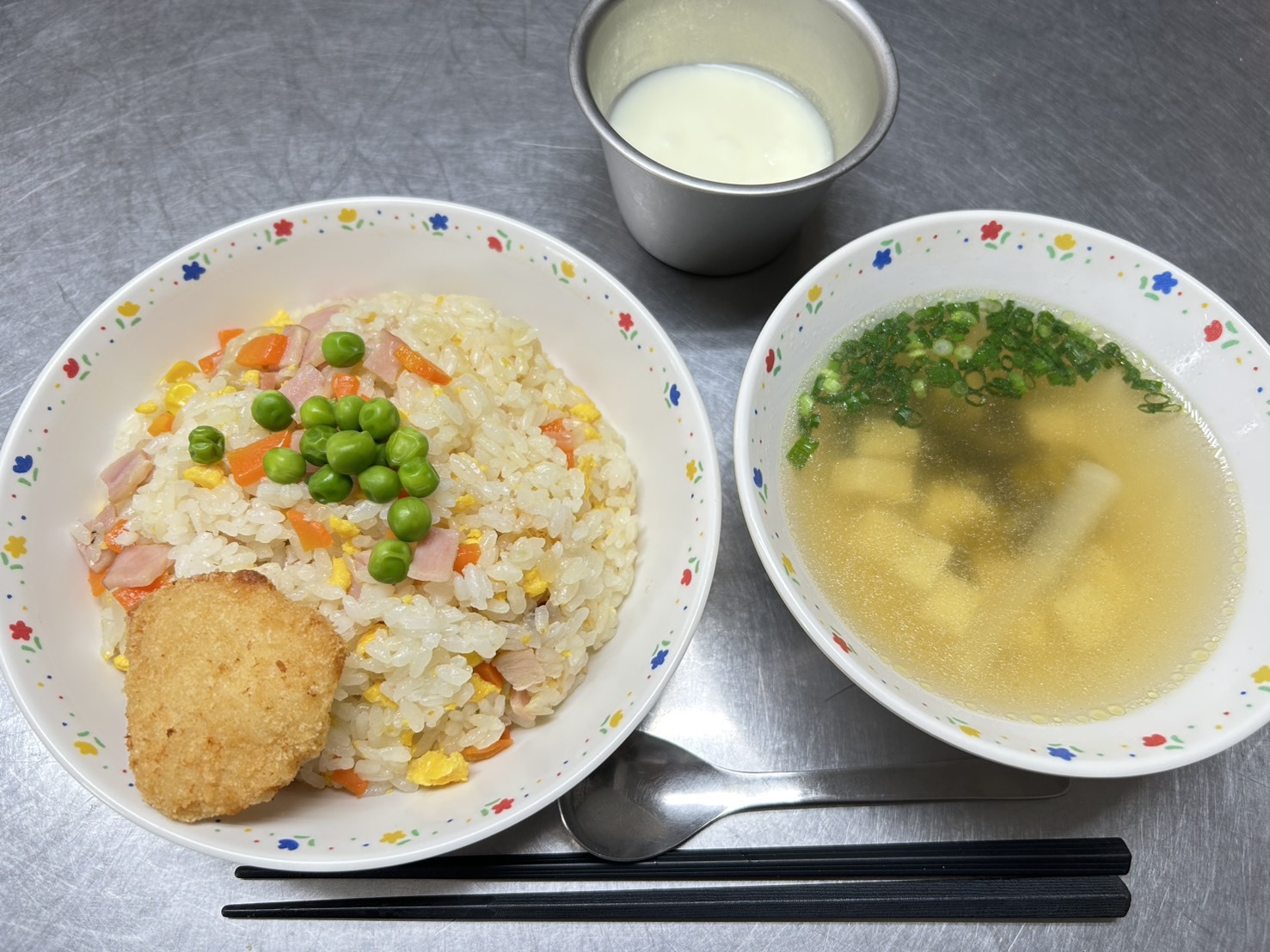 2月25日 卵とハムのチャーハン、チーズサラダ、わかめスープ、ヨーグルト