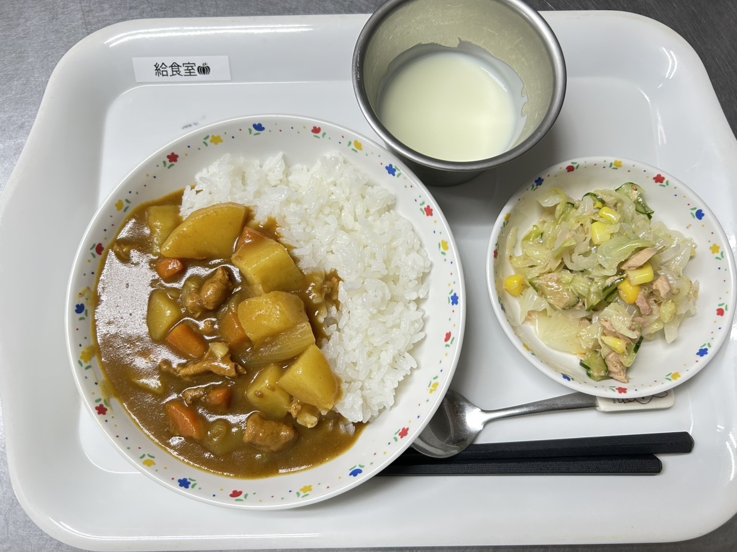 9月29日 カレーライス、野菜とツナの和え物、ヨーグルト