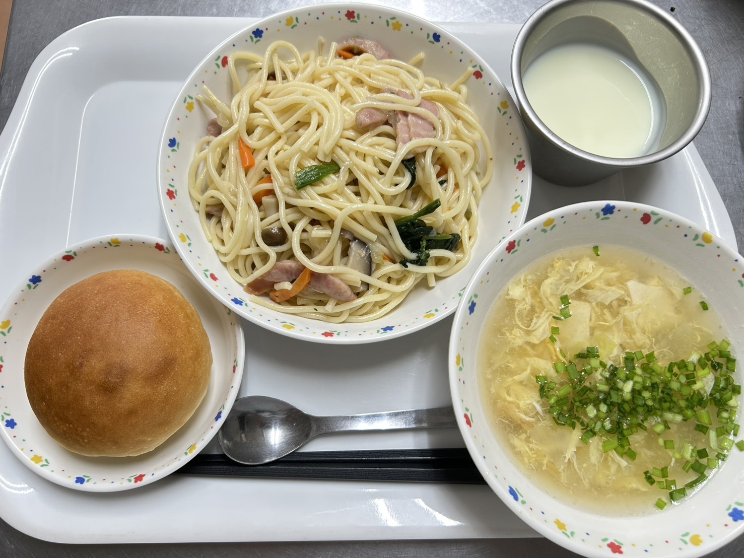 9月30日 コッペパン、キノコの和風スパゲティー、厚揚げと卵のスープ、ヨーグルト